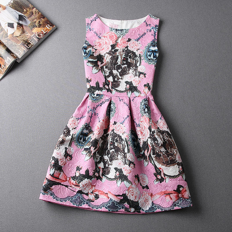 - Pink Sleeveless Jacquard Printed Dress